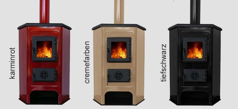 - Emaillierte Öfen und Ofenrohre sind mit ihren lebendigen und beständigen Farben ein echter Blickfang.