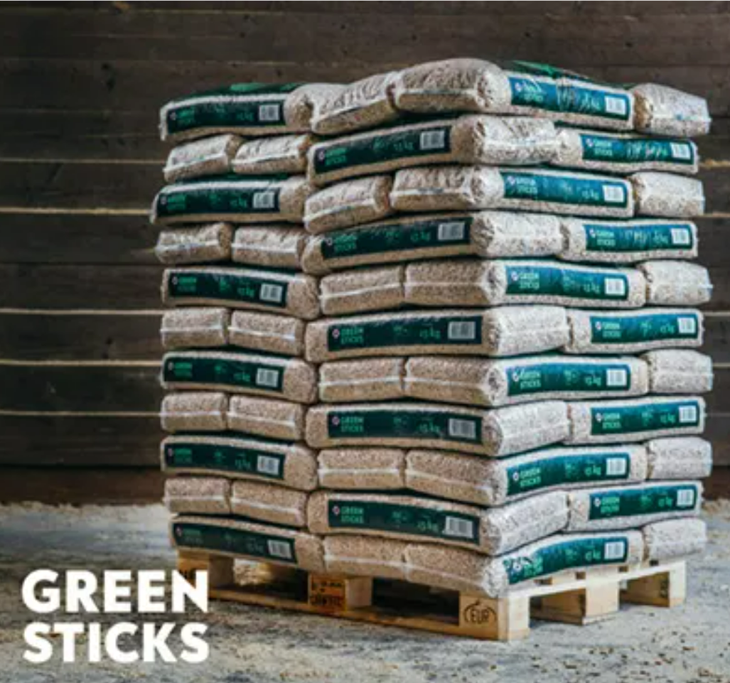Greensticks- Holzpellets als Sackware – 990 kg auf Palette