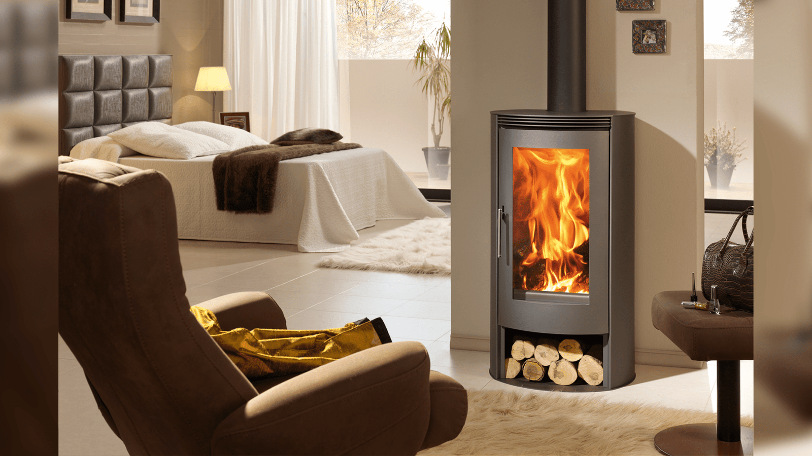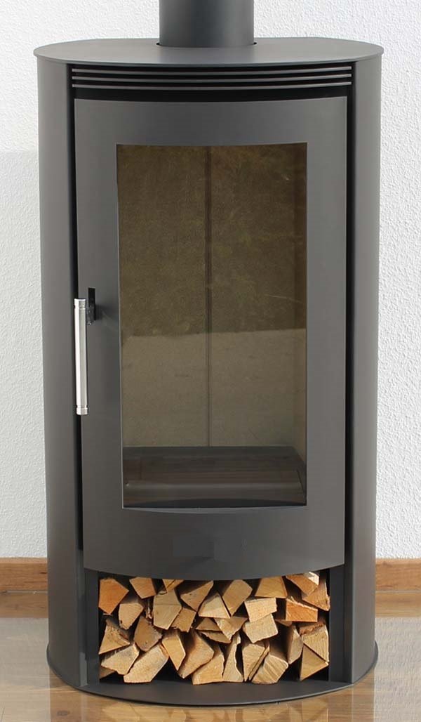 - moderner Kaminofen mit klarer, runder Form