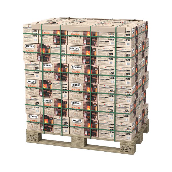 Die Briketts werden ordentlich verpackt auf einer neuen pfandfreien Euro-Palette mit Wetterschutzhaube geliefert.