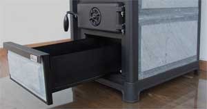 - auf Rollen gelagerter Vollauszug im unteren Teil des Specksteinofens