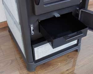 - großer komplett herausnehmbarer Aschenkasten (auf dem Bild ist nur das vordere Drittel des Kastens zu sehen)