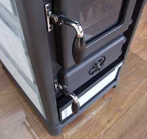 - Mit dem Rüttelrost können Sie ganz einfach Asche und andere Rückstände in den Aschenkasten befördern, sodass die Luft weiterhin ungehindert nach oben in den Brennraum strömen kann.