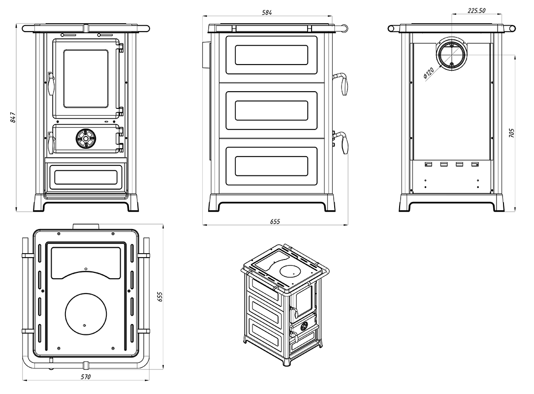 - Der großzügige Brennraum und weitre relevante Bauteile wie die Feuerraum- und Aschekastentür sowie die Abdeckplatte sind aus Grauguss gefertigt und damit sehr wartungsarm und langlebig. Schamott- oder Vermiculite-Steine werden gar nicht erst benötigt.